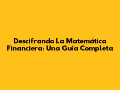 Descifrando La Matemática Financiera: Una Guía Completa