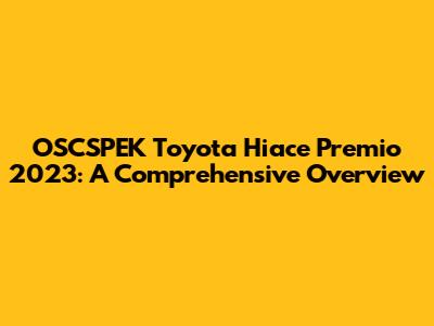 OSCSPEK Toyota Hiace Premio 2023: Everything You Need To Know