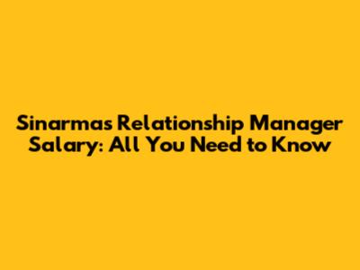 Sinarmas Relationship Manager Salary: All You Need To Know